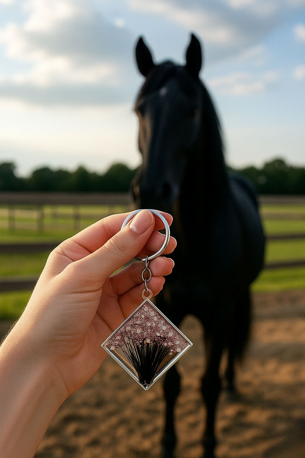 Cet être cher vous suivra partout grâce à ce porte-clés. Conçu pour immortaliser une mèche de cheveux, de crins ou de poils, son design en éventail lui apporte une touche d'élégance. Créez un porte-clés unique en sélectionnant la couleur des paillettes qui correspondent parfaitement à vos goûts.